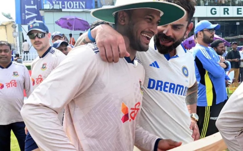 Virat Kohli’s Heartfelt Gesture: Gifts Bat To Shakib Al Hasan After Final Test Match
