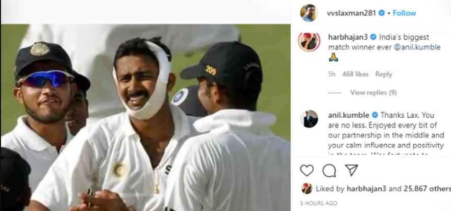 Kumble comments, “Thanks Lax. You are no less. Enjoyed every bit of our partnership in the middle and your calm influence and positivity in the team. Was fortunate to have played in an era with you and other great teammates. Stay safe!”