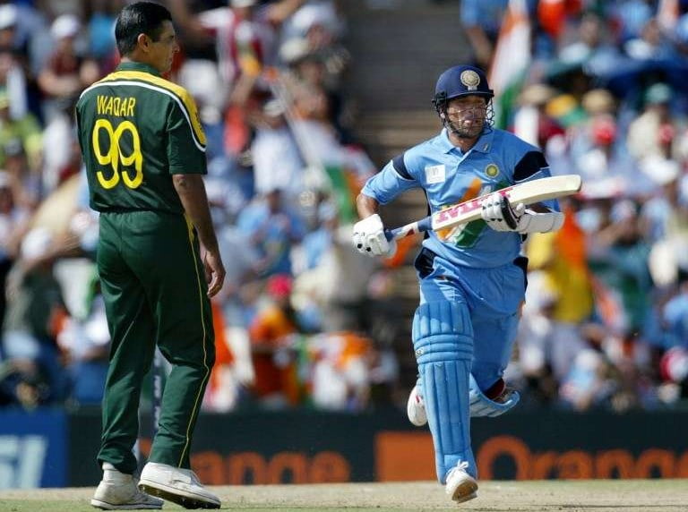 Sachin Tendulkar and Waqar Younis during the 2003 World Cup