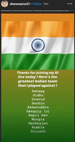 Warne picked Virender Sehwag and Navjot Singh Sidhu as the openers of his side, and he also gave clarification as to why he picked Sidhu in his side. On Instagram, Warne was heard saying, “I had to pick Navjot Singh Sidhu because he was the best player against spin I have ever played against, all the other spinners I have played with, they have also told me that Siddhu was brilliant against them.”