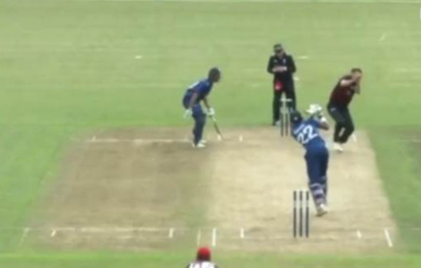 During a domestic one-day match on Wednesday, New Zealand opener Jeet Raval smashed a bowl back at medium-pacer and Canterbury captain Andrew Ellis at the Colin Maiden Park in Auckland. The ball hit the bowler on the forehead—an inch or so above his right eye and bounced off to clear the long-on boundary.