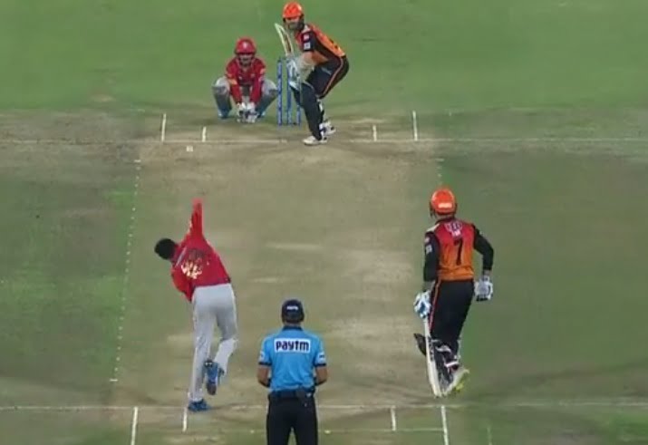 Despite the wickets of set batsmen, Williamson and Nabi kept on smashing Punjab as they added as many as 34 runs for the 4th wicket before the latter getting out in the 19th over of Mohammed Shami owing to a brilliant catch by M Ashwin. However, a funny incident took the place in the 17th over of Mujeeb-ur Rahman as he bowled the first ball outside as Williamson went hard and the ball took the outside edge to flew over the fielders at short third and backward point. Chris Gayle went for the chase from short third man and ends up kicking it away to the fence.