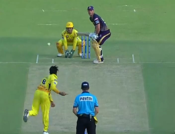 The 14th over of the first innings bowled by Jadeja started with three consecutive sixes by Lynn, who scored 82 runs before getting out in the next over. The first one went over the extra cover region, then over deep midwicket followed by the last one over the long-on boundary.