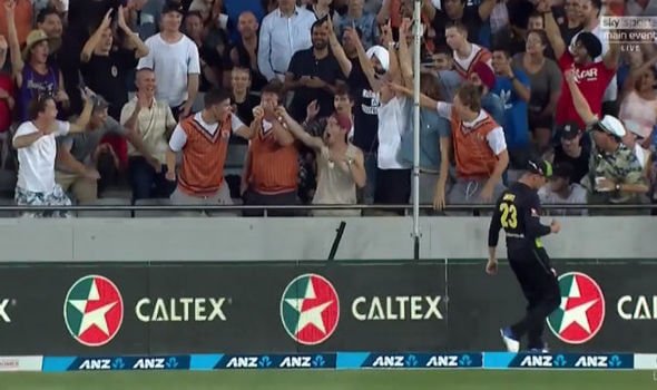 A fellow cricket nut tweeted: “Great catch in the crowd…..buy that man a beer!! #NZvsAUS.”