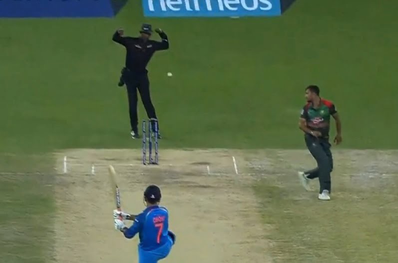 The 32nd over of Team India’s chase against Bangladesh in the ongoing game of the Super Four stage of the Asia Cup 2018 bowled by the Bangladeshi captain Moashrafe Mortaza as MS Dhoni pulled off ferocious hit past the umpire for a boundary. Incidentally, it was a free-hit ball by Mortaza.
