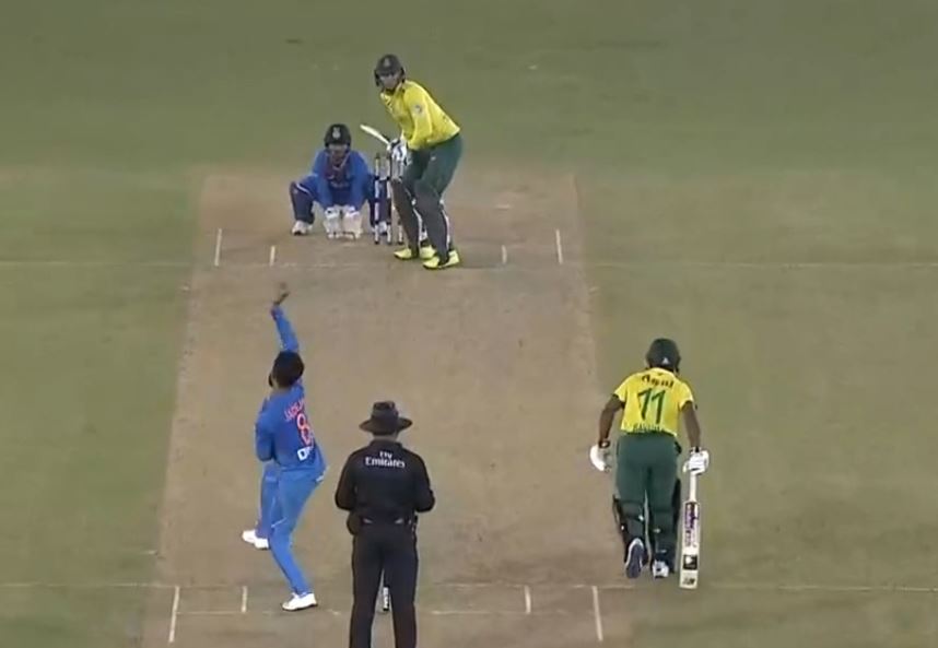 The visitors had a decent start as they scored 24 runs in the first three over but, Deepak Chahar got the first scalp for India in the fourth over when, he dismissed, Reeza Hendricks. After his dismissal, De Kock and Temba Bavuma had a decent partnership of 57 runs for the second wicket before Navdeep Saini dismissing De Kock on the second ball of the 12th over owing to a brilliant catch by Kohli.