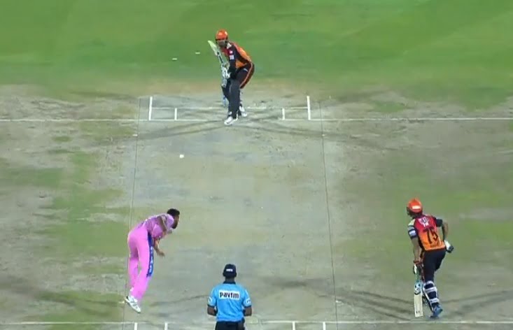 One of the few bad things for SRH in the game was the early dismissal of their skipper Williamson when he was undone by Shreya Gopal’s wrong’un in the 4th over. However, after his dismissal, David Warner and Manish Pandey continued their batting form as they added as many as 75 runs for the second wicket before the former getting out in the 13th over of Oshane Thomas owing to a mind-boggling catch by Steve Smith. Even, Manish got out in the 15th over of Gopal, owing to the brilliance of Sanju Samson behind the stumps.
