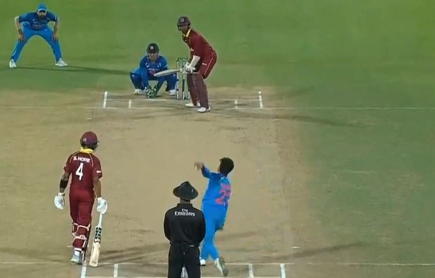 However, on the very next ball, Yadav bowled a googly which ended up Samuels getting bowled as he left with his bat hanging well away from his body, for Kuldeep’s bowl to sneak through. The ball hit the top of the bails. The umpires weren’t sure and needed to go upstairs as MS Dhoni’s gloves were very close to the stumps, but the third umpire also gave it as out. It was a rare ‘bowled’ dismissal which was decided by the third umpire.