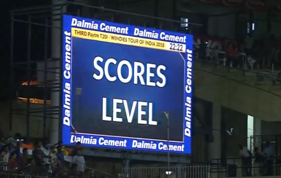 4th ball – Fabian Allen was bowling the final over and scorers were level after the first three ball and Dhawan couldn’t manage to score on the 4th ball as he played the ball straight to square leg.