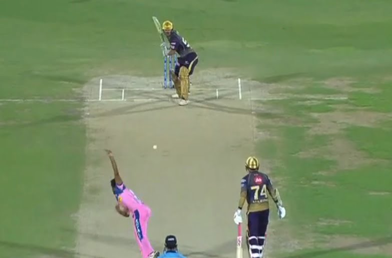 On the first ball of the over, Kulkarni bowled a slower on to Narine, who went for an aerial shot towards long-off but ended to smashing it to backward point as the ball went very high. Despite the opportunity, Rahul Tripathi dropped the catch although he came under the ball quite early.