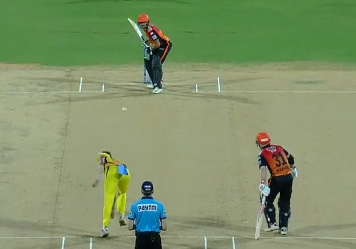Pandey and Warner added 111 runs for the second wicket before the latter getting out in the 14th over as he was looking tired as well due to the intense humidity of Chennai. During the partnership, Manish scared Deepak Chahar with his ferocious shot in the 5th over. On the third ball of the over, Chahar delivered a full ball on off stump and with his ferocious straight shot, he nearly takes the bowler’s head, who was in his follow through.