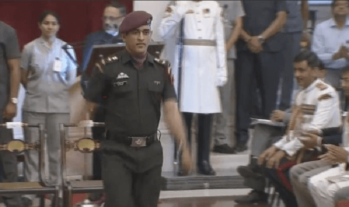 #WATCH Billiards player Pankaj Advani and Cricketer MS Dhoni conferred with Padma Bhushan by President Ram Nath Kovind at Rashtrapati Bhawan in Delhi pic.twitter.com/XgPTHWsxBl