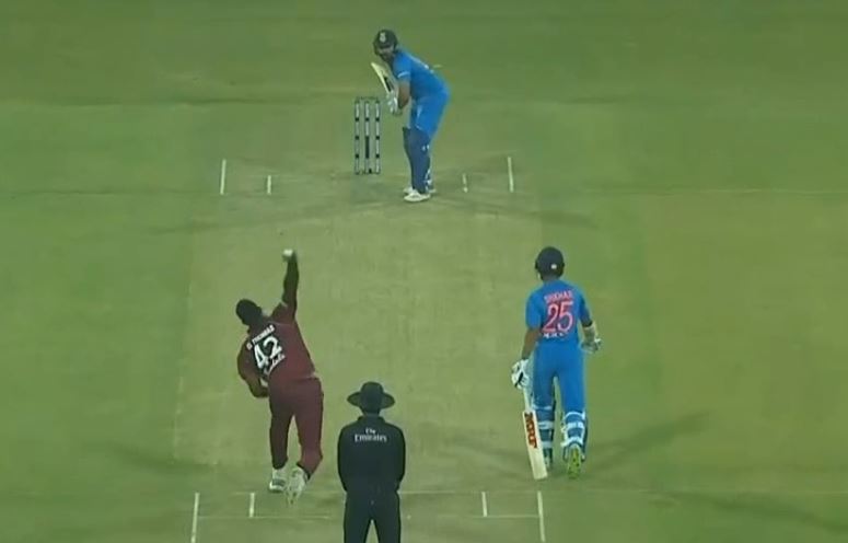 The Windies pacer Oshane Thomas became the talk of the town after the series opener as he dismissed both the openers cheaply and he managed to keep them quiet in the second game as well but in the fifth over of the game, Rohit and Shikhar said enough is enough as they smashed 17 runs in the over.