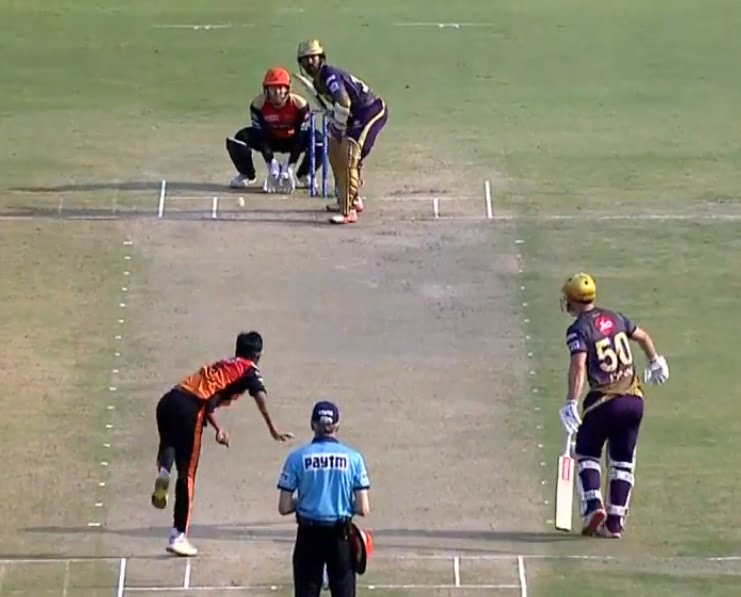Nitish Rana got out in the 8th over off the bowling of Bhuvneshwar but, Lynn kept on smashing the SRH bowlers. Karthik and Lynn also failed to bring a partnership as the KKR skipper was dismissed in the 9th over owing to a brilliant throw from Vijay Shankar.