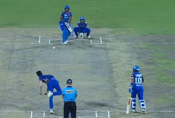 During the chase, Shikhar Dhawan and Prithvi Shaw had a fiery start as they added 48 runs in the powerplay. Similar to MI, Delhi also lost their first wicket in the 7th over as Dhawan was dismissed by young Rahul Chahar while attempting a reverse sweep. Chahar delivered a length ball outside leg, Dhawan went for the reverse sweep but failed to execute it and the ball crashed on to his pads and ricochets on to the stumps off the bat.