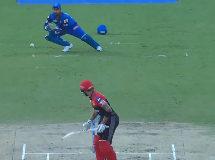 During the chase, the RCB started on fire as Parthiv Patel and Virat Kohli added as many as 63 runs for the opening wicket before Patel getting out in the 6th over of Kagiso Rabada. However, in the fifth over of Ishant Sharma, Kohli got a lifeline as Ishant delivered a back of a length and in an attempt to guide to the third man Virat’ back got a thick edge, Pant took a brilliant catch, but in the replays, it was shown that it had bounced into his gloves. However, before going to the third umpire Virat predicted that it wasn’t taken.