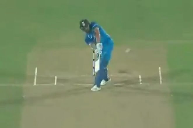 It was in the ninth over of the chase and the Windies pacer Kemar Roach was bowling it. Virat took a single off the first ball of the over and gave the strike over to his partner. Rohit then played three consecutive dot ball and it seemed as if the pressure was building on his. On the fifth ball of the over, Roach bowled a fuller delivery on the middle and the off-stump.