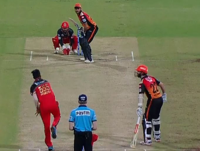 On the second ball of the over, Guptill stayed back on a length ball and ended-up chipping it towards short midwicket where Kohli took a comfortable catch. Just one ball later, Sundar again bowled a length ball and Pandey went for a pull, but mi-timed it and Hetmyer put-in forward dive at midwicket to take the catch inches off the ground. In the replays, it was shown that Hetmyer was in complete of the ball and his own movement as well.