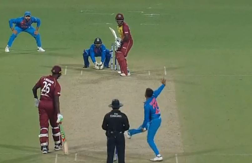 On the third bowl of the 13th over, Kuldeep Yadav bowled a googly on the up and as most of the batsmen in the world, Powell failed to read it. Powell attempted a feeble drive, but he didn’t get to the pitch, had a waft at that and managed the thinnest of edges to Dinesh Karthik. However, after the later replays, it was shown that the bowl didn’t kiss the outside edge of Powell’s bat as the sound came of when his bat brushed his shoes.
