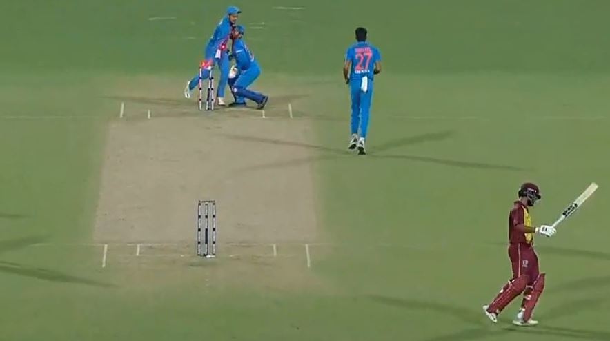 However, Rohit’s decision was justified in the third over of the match when the Indian pacer Umesh Yadav dismissed Dinesh Ramdin and reduced the Windies to 16/1. Apart from that, something very unusual happened in the next over bowled by Khaleel Ahmed as the visitors lost their second wicket.