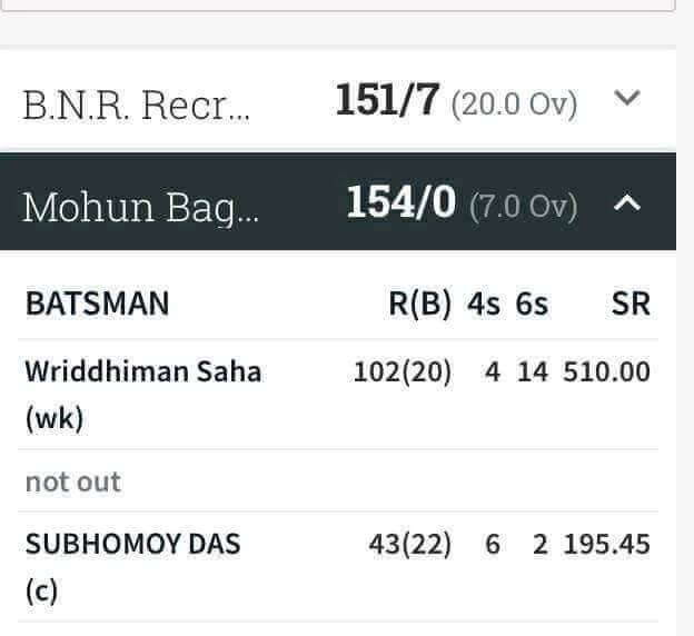 It must be mentioned that BNR is one of the better first division teams and Kalighat ground is of decent size in Kolkata Maidan. While being dubbed as a Test specialist, Wriddhiman does have an IPL hundred — during the 2014 edition in Bengaluru for the Kings XI Punjab.