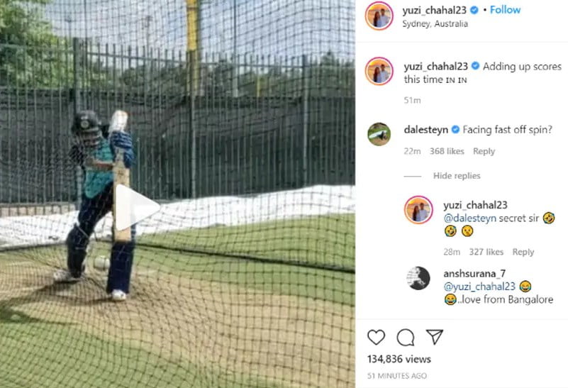 On Thursday, the Indian leg-spinner, Yuzvendra Chahal shared a video of himself on Instagram in the nets in Sydney. In the video, the leg-spinner can be seen playing a few defensive shots. Captioning the video on social media, Chahal wrote: “Adding up scores this time”.