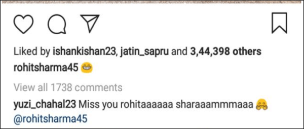 In his comment, Yuzvendra Chahal stated that he is missing Rohit Sharma a lot. Here’s the screenshot of Chahal’s comment: