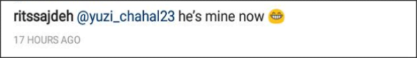As soon as Rohit’s wife Ritika noticed this comment, she immediately showed possessiveness in her comment. She wrote, “He’s mine now :D”